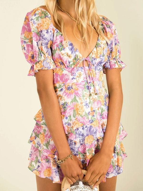 Fun and flirty! Our gorgeous Dress is made from a high-quality Cotton fabric with a vibrant floral print throughout! She features a cupped bust with tie detail, puff sleeves and a tiered ruffle skirt. Style her with strappy heels and a mini bag for your next night out!